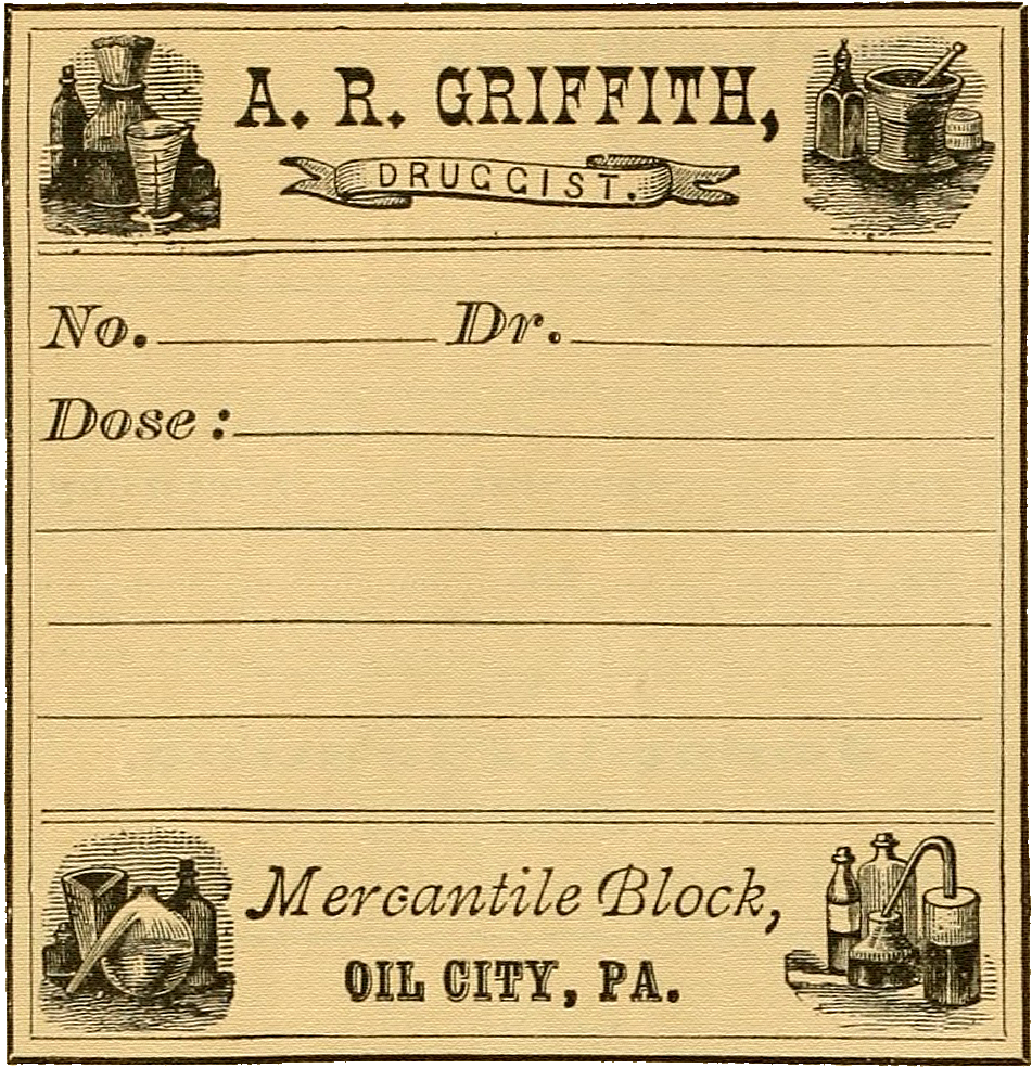 I love finding old catalogs – they are a treasure trove of cool stuff! I found this catalog with labels for a druggist – so there were samples of all the types of labels they sold, including some prescription pages.